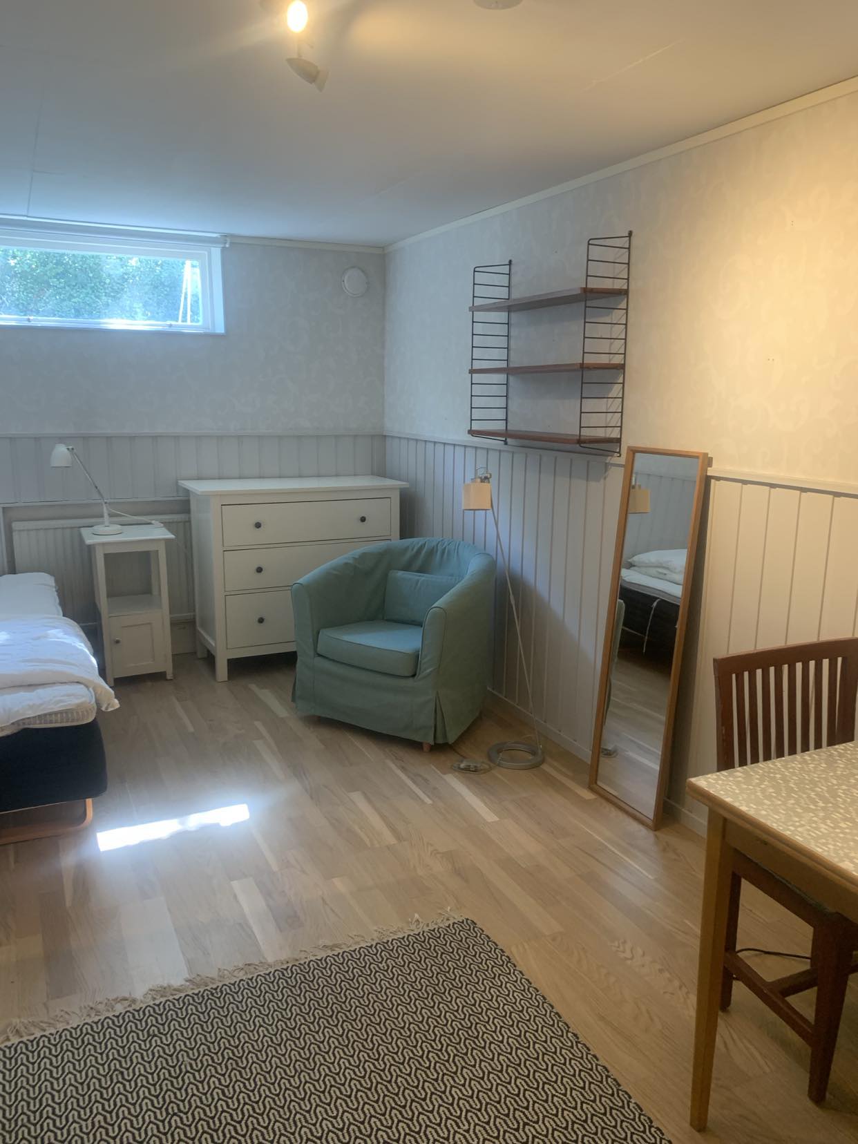 Möblerat rum i källarvåning. 2 fönster. Kylskåp, micro, vattenkokare och brödrost på rummet. Toalett och dusch i tvättstugan som ligger intill. Tillgång till kök. Uthyres till kvinnlig student eller forskare. Jag arbetar heltid och är sällan hemma. Internet och el ingår. Nära till Ultuna och BMC. 15 min cykelväg till centrum. Jag hyr också ut ytterligare ett rum så du får dela toalett och dusch med den hyresgästen.