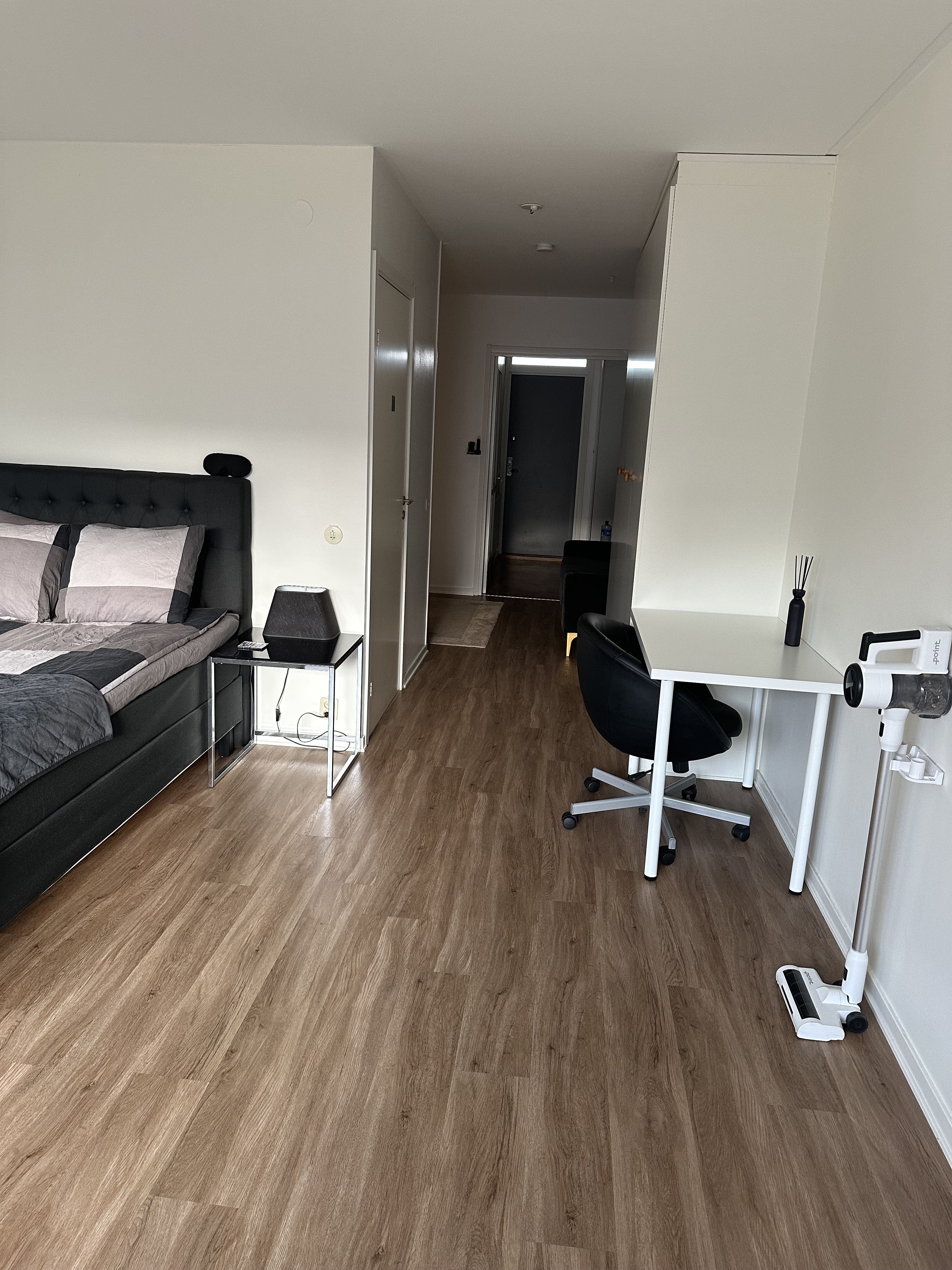 Jag hyr ut en möblerad del av den lägenhet som jag själv bor i då jag spenderar majoriteten av min tid på jobbet men även att jag vill sänka mina kostnader. Den del som hyrs ut omfattar cirka 20 kvm. Kök, dusch och toalett delas gemensamt. Den uthyrda delen är möblerad. Den uthyrda delen är möblerad. Följande ingår, vilket även framgår av bilderna: • Säng 140 x 200 cm • Sängbord & Sänglampa • Skrivbord & Stol • Garderob • Element/klimatenhet med möjlighet att reglera temperaturen mellan 10 och 35 grader I hyran ingår: el, varmt och kallt vatten. Det tillkommer alltså inga extra avgifter för normal användning av bostaden. Jag söker i första hand en hyresgäst som har en huvudsaklig sysselsättning, till exempel arbete eller studier. Eftersom vi kommer att dela vissa utrymmen och du får tillgång till min bostad så är det viktigt att du är ordningsam, respektfull och fungerar bra i ett delat boende. Referenser från tidigare boenden eller rumskamrater är därför ett krav. Läget och närservice • Närmaste busshållplats, Svärdsliljegatan: cirka 250 meter • Närmaste ICA, ICA Årstahallen: cirka 5 minuters promenad • Gränby Centrum: cirka 10 minuters promenad Viktigt att känna till: Den del som jag hyr ut ligger i anslutning till min egen sovdel. Det finns ingen permanent vägg eller dörr mellan delarna, utan utrymmena skiljs åt av en öppen korridor. Det innebär att ljud och ljus kan märkas men att man inte kan se rakt in i varandras del av lägenheten. För den som önskar mer avskildhet finns möjlighet att sätta upp en vikbar skärmvägg eller annan rumsavdelare på egen bekostnad.