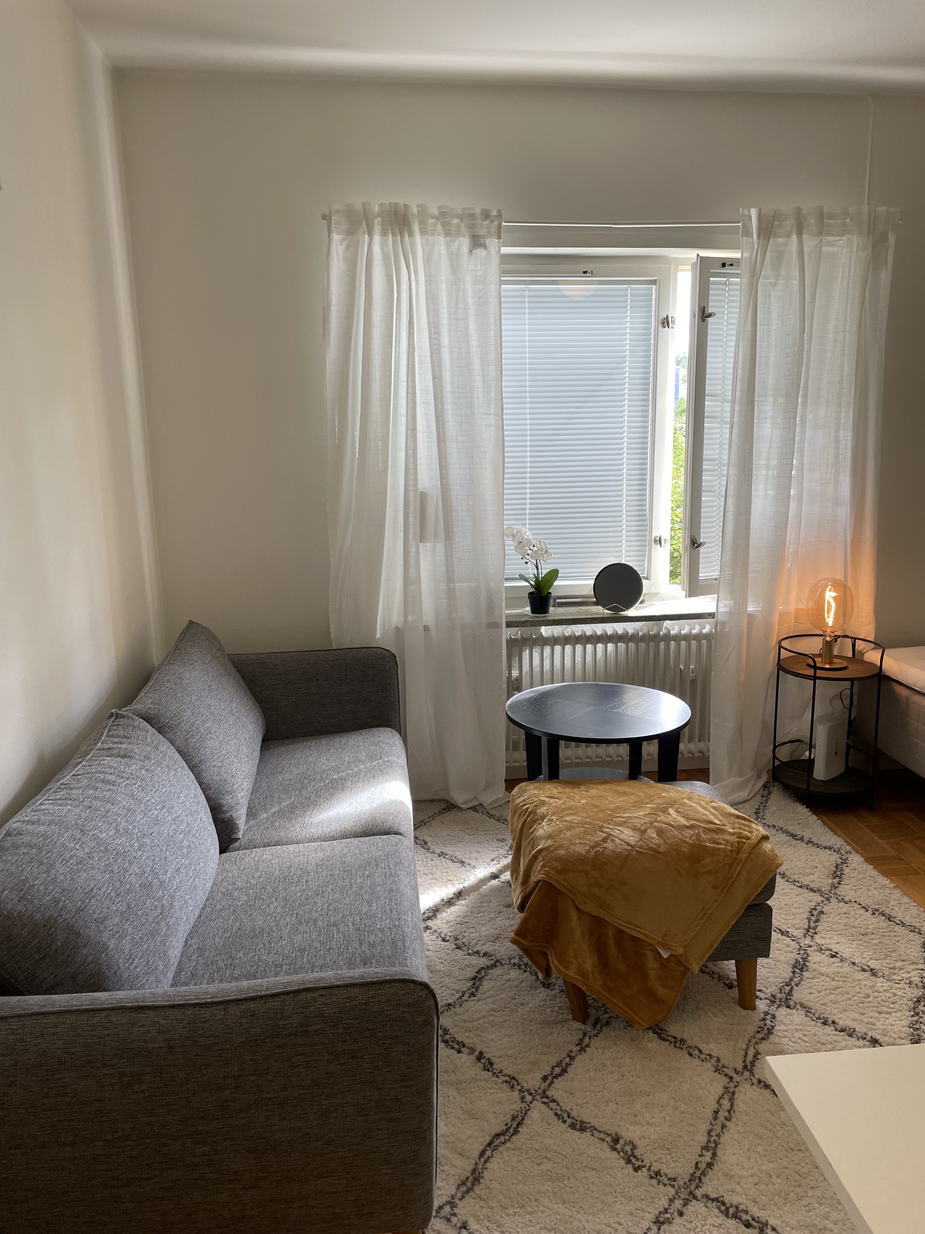 Välkommen till Banérgatan 16c. Nära Akademiska sjukhuset, BMC, SLU och Uppsala Universitet. Lägenheten hyrs ut till personal / gästforskare / exchange students / studenter vid Uppsala universitet, SLU, Akademiska sjukhuset, m.fl. Här kan du bo 8-12 månader, med möjlighet till förlängning. Hyresgäster som säker längre vistelse kommer att ges företräde. Fully furnished and equipped apartment, close to BMC, Ångström Lab., Hospital, University and city center. Possbility for long term lease. Very comfortable apartment for 1-2 adults. Easy parking on the street if you have a car. Free bike & laundry room. Free storage unit is included. Möblerad lägenhet i mycket bra läge i Uppsala. 5 min på cykel till centrala Uppsala, Akademiska sjukhuset, Uppsala universitet, BMC, Ångström, mm - mycket nära till allt! Tillträde 1 maj 2026. Kontrakt skrivs gärna på 12 månader, minst 8 månader. Hyra 9200 kr inkl. wifi och el. Inga extra räkningar :) Vi tar en (1) månads deposition. Allt ingår - varmt och kallt vatten, el, wifi och värme. Inga kostnader tillkommer. 2 månaders uppsägningstid. Bostaden är belägen i Kåbo i centrala Uppsala och fungerar bra för både en och två personer (max 2 personer, inga barn, inga djur). Smakfull inredning. Säng 140 cm, bord, stolar, soffa, lampor, städartiklar, köksutrustning, mikro, kyl med frysfack, spis, TV med CromeCast & HDMI-sladd. Brandvarnare och brandsläckare finns i lägenheten. Du/ni som hyr har även tillgång till tvättstuga, eget förråd som du låser med ett eget hänglås, trädgård och andra gemensamma utrymmen. Lätt att parkera bil i området.