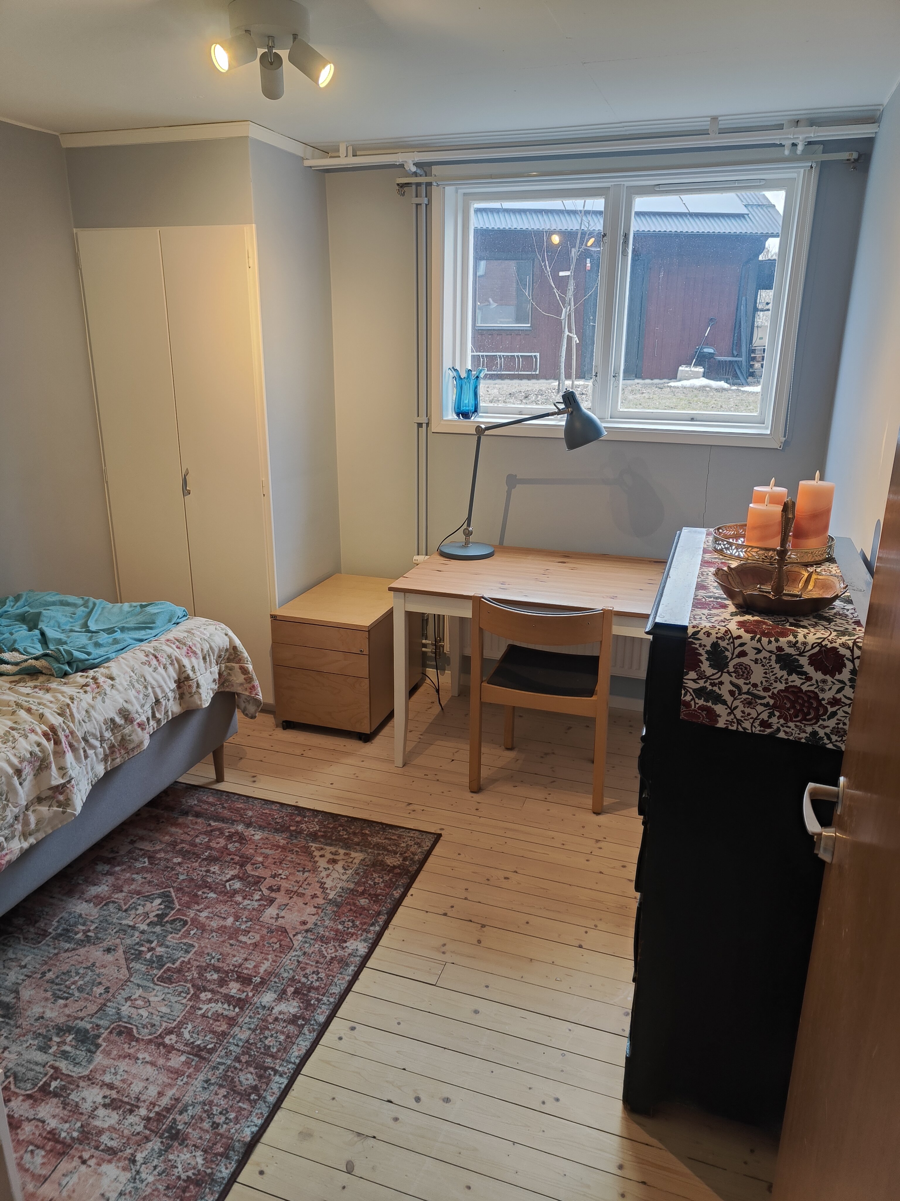 Room in shared student apartment. Close to SLU and Ångströms laboratory. We rent out a room for a student or intern in a shared apartment with a total of 4 tenants in Sunnersta. The shared apartment has a separate entrance from the house. The room is furnished with a bed, closet, desk and chair. You share a common living room with sofa and TV, a large kitchen with dishwasher, bathroom with shower, and additional 2nd restroom. You have access to a laundry room equipped with 2 laundry machines and a drying room. Electricity, water, heating, WiFi are included in the rent. As this is a shared apartment it is important to us that you are a calm, orderly, clean, and social person enjoying living together with others. You are a non-smoker and no pets are allowed. It is about 3 km to Campus Ultuna and 5 km to Ångströms laboratory. It is about 500 m to the closest convenience store. The bus stop is very close and has 4+ departures per hour taking you to the central station in about 20 min passing by SLU, Ångströms, and BMC along the way. Contract can be extended over summer or a new one can be made starting with the next term. Interested? Send us a short description of yourself. Cheers, Signe & Timo